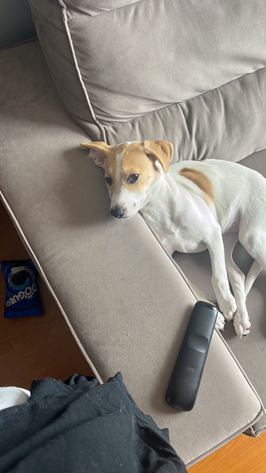 è uma cachorra filhote que precisa muito de espaço para brincar e se divertir. Ama estar com pessoas e se deixar brinca o dia inteiro